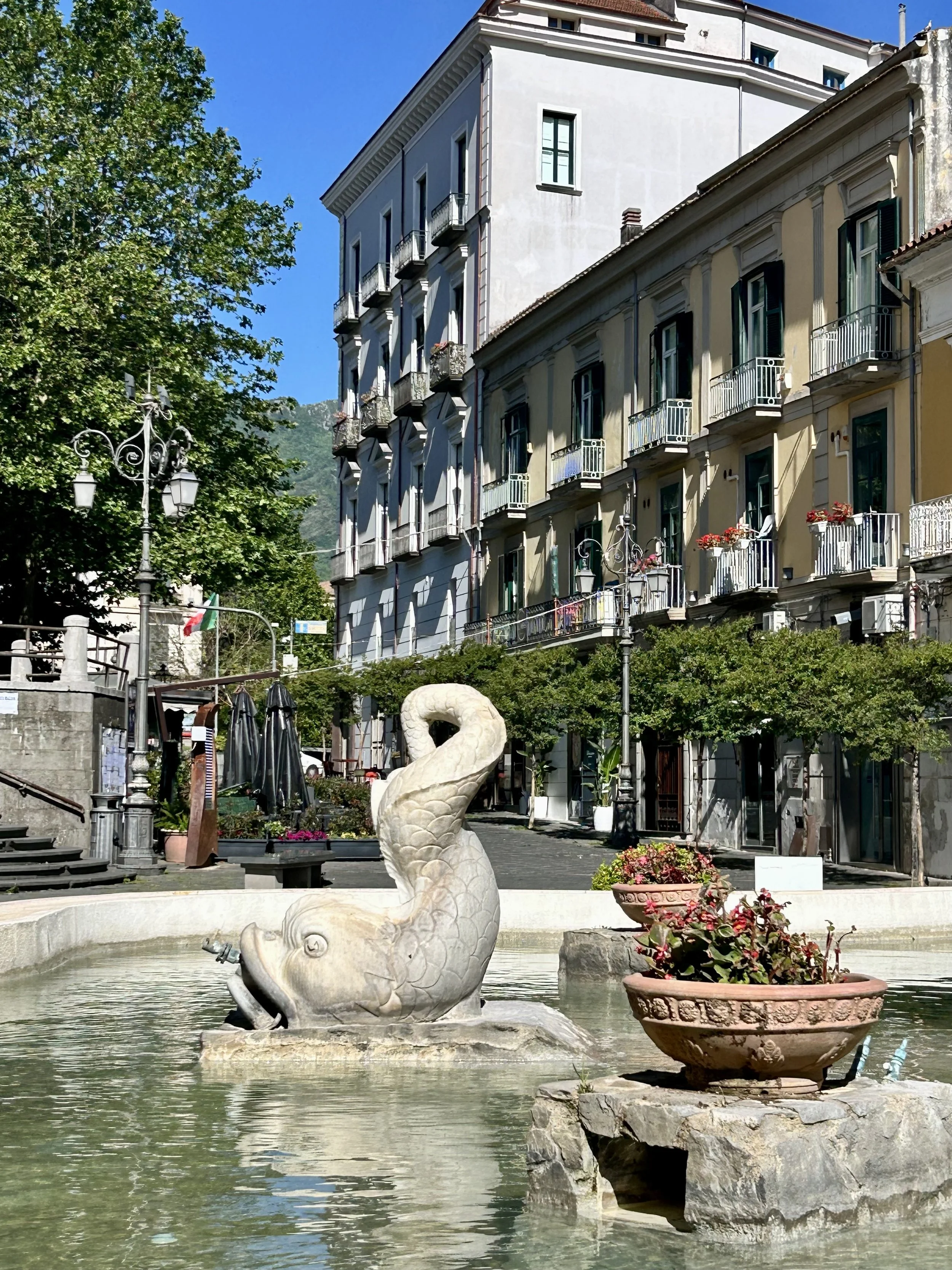 Fueled by carbs and espresso, we wandered the 2 km to Corso di Cava, the main piazza. Cobblestones. Storybook arches dripping in hanging baskets. Grand Churches. A fountain as if from a movie set. It was exactly what I hoped Italy would look like.