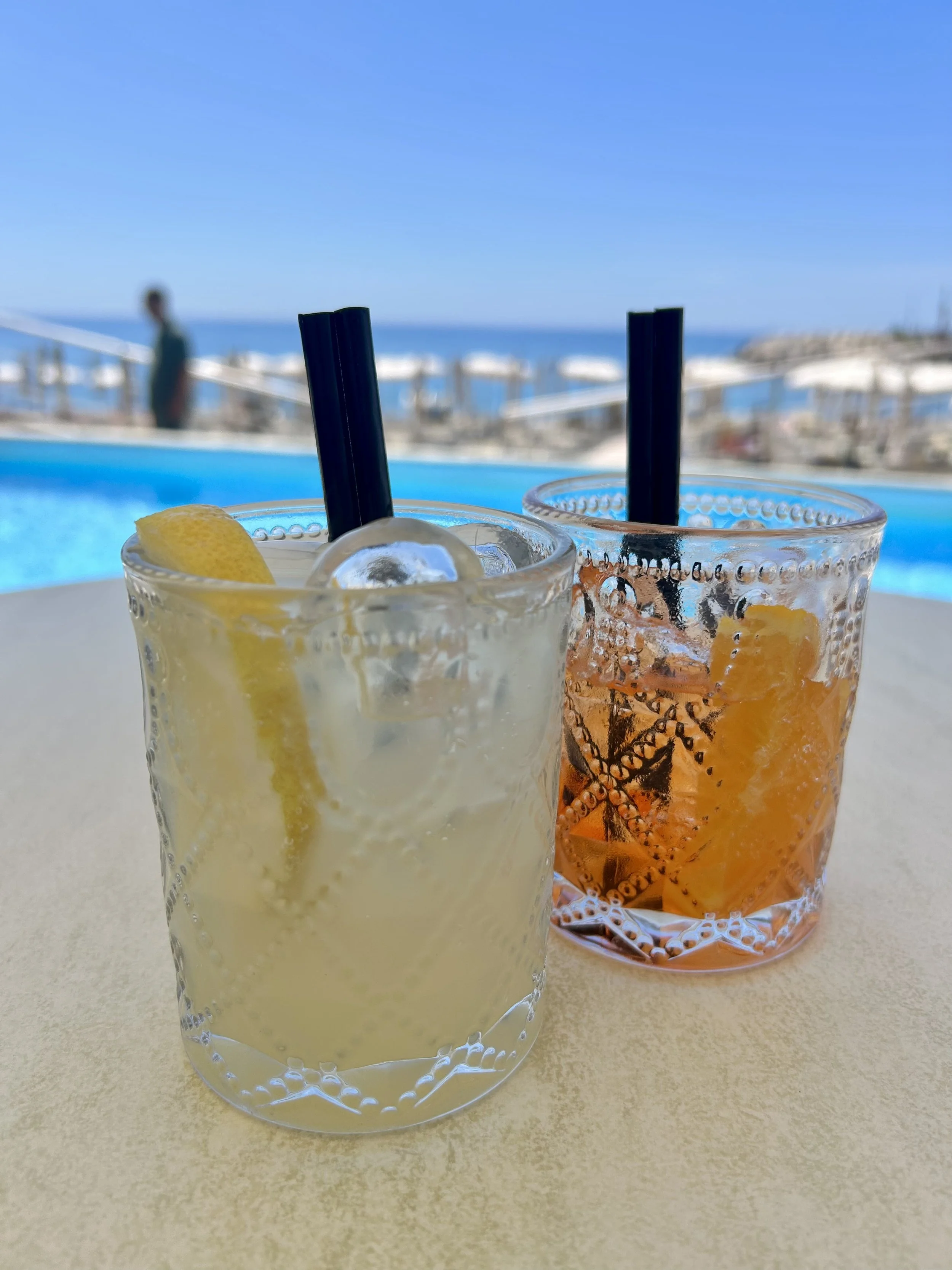 After walking and wandering, we found Lido San Francesco, a restaurant with beach and pool access. For 10 bucks, we scored beach chairs, umbrellas, and a view. We swam, we read, we sipped Lemoncello Spritzes. All was glorious… until I realized our “sunscreen” was just lotion. By the time we noticed, I had the start of a burn, and a bit of regret.