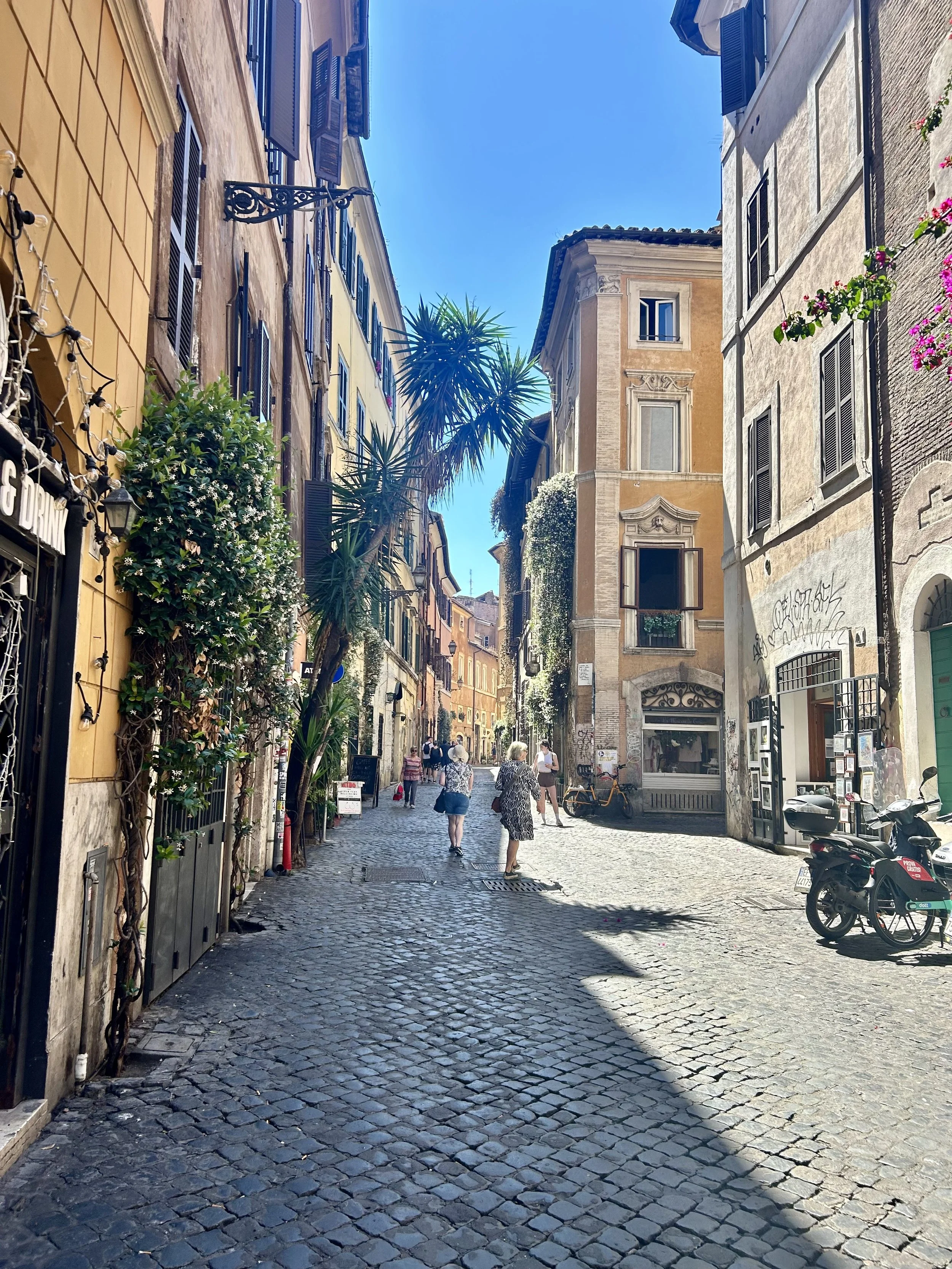 From there, we let the day unfold on its own, strolling through cobblestone streets until we found ourselves in Campo de’ Fiori for drinks and snacks. Then we crossed the river to Trastevere, where we explored the shops and soaked up the charm. By the time we started thinking about lunch, it was nearly 3 p.m., and we were crossing our fingers we’d even find a place open. Italy tends to shut down in the afternoons. Luckily, we stumbled upon a tiny deli that was still serving, and it turned out to be a gem . We split a delicious sandwich and a perfect cannoli. Sometimes, the best meals are the ones you don’t plan.