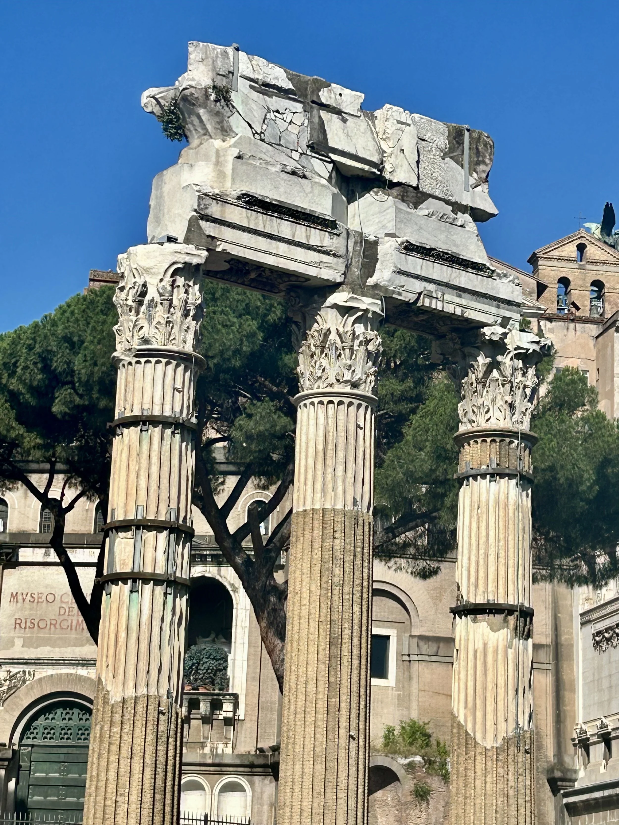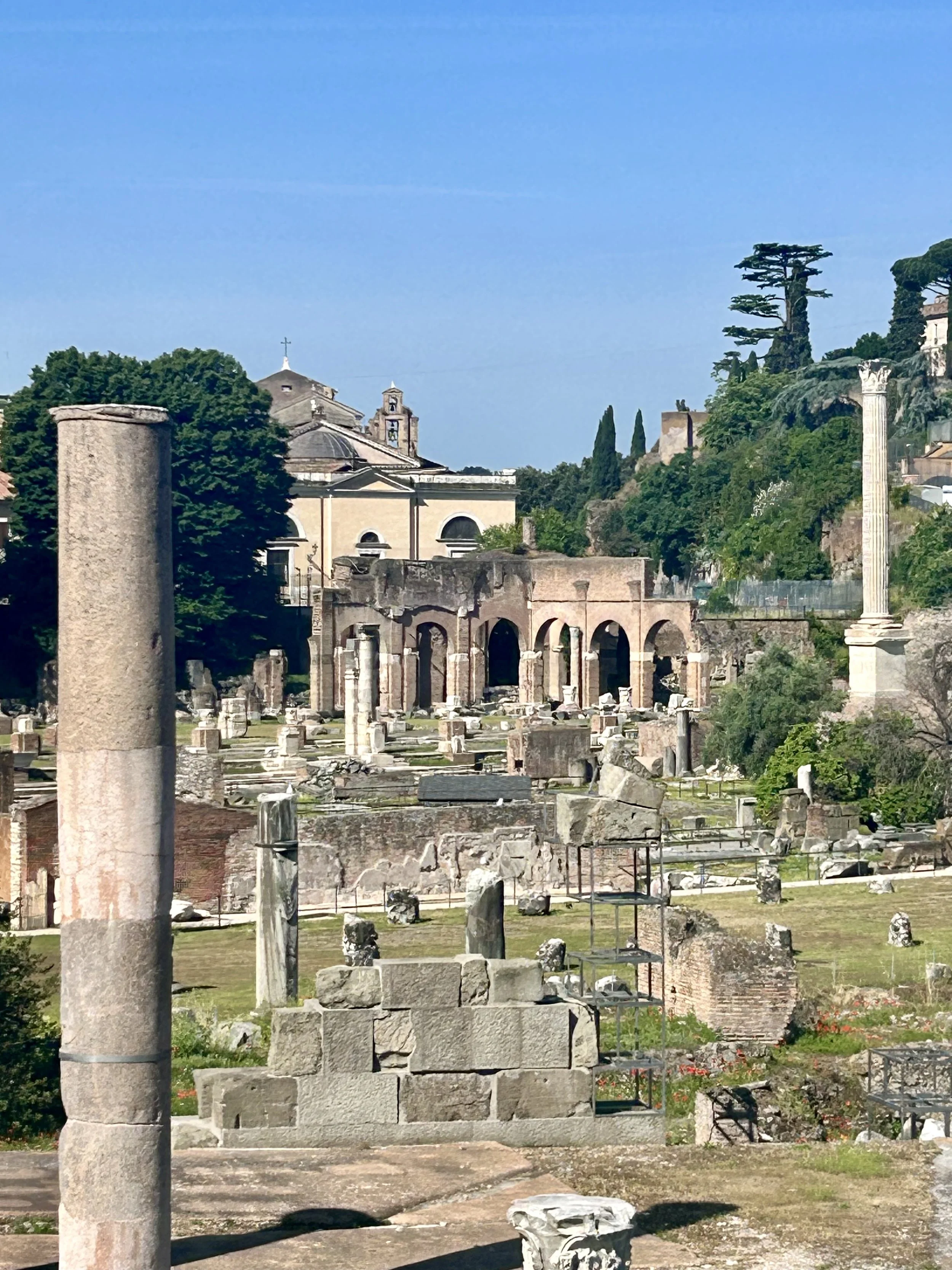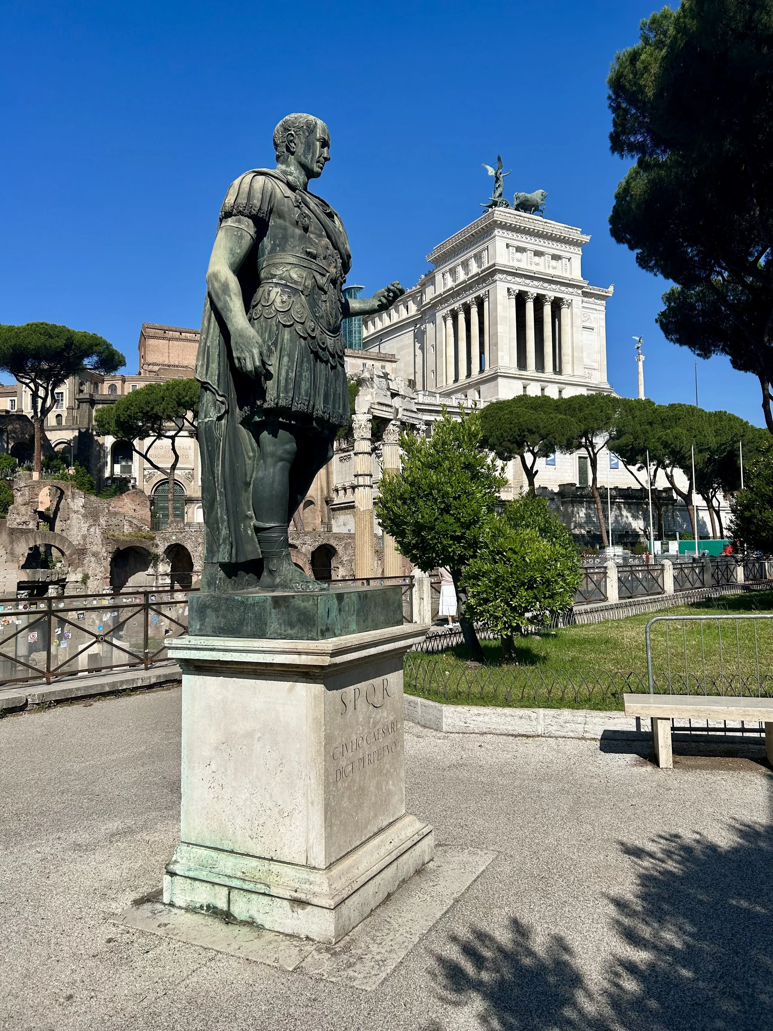 After breakfast, we set out for the city starting with a 15 minute walk to the train at Rome Muratella which took us to , the Roma Ostiense station, followed by a quick subway ride. Off the subway and up some stairs, and suddenly, there it was: the Colosseum, holy cow. It literally took my breath away. I was HERE. It’s one of those sights that will never lose its magic. Standing in front of it, you can almost feel the weight of history. We had nothing scheduled that day, which turned out to be such a gift. We wandered aimlessly through the surrounding ruins, pausing to take in the Roman Forum, the Temple of Venus, the statue of Caesar, and remnants of ancient structures that have stood for centuries. It’s surreal to see history in person, to walk the same paths where emperors once stood and imagine the lives that played out in those very streets.