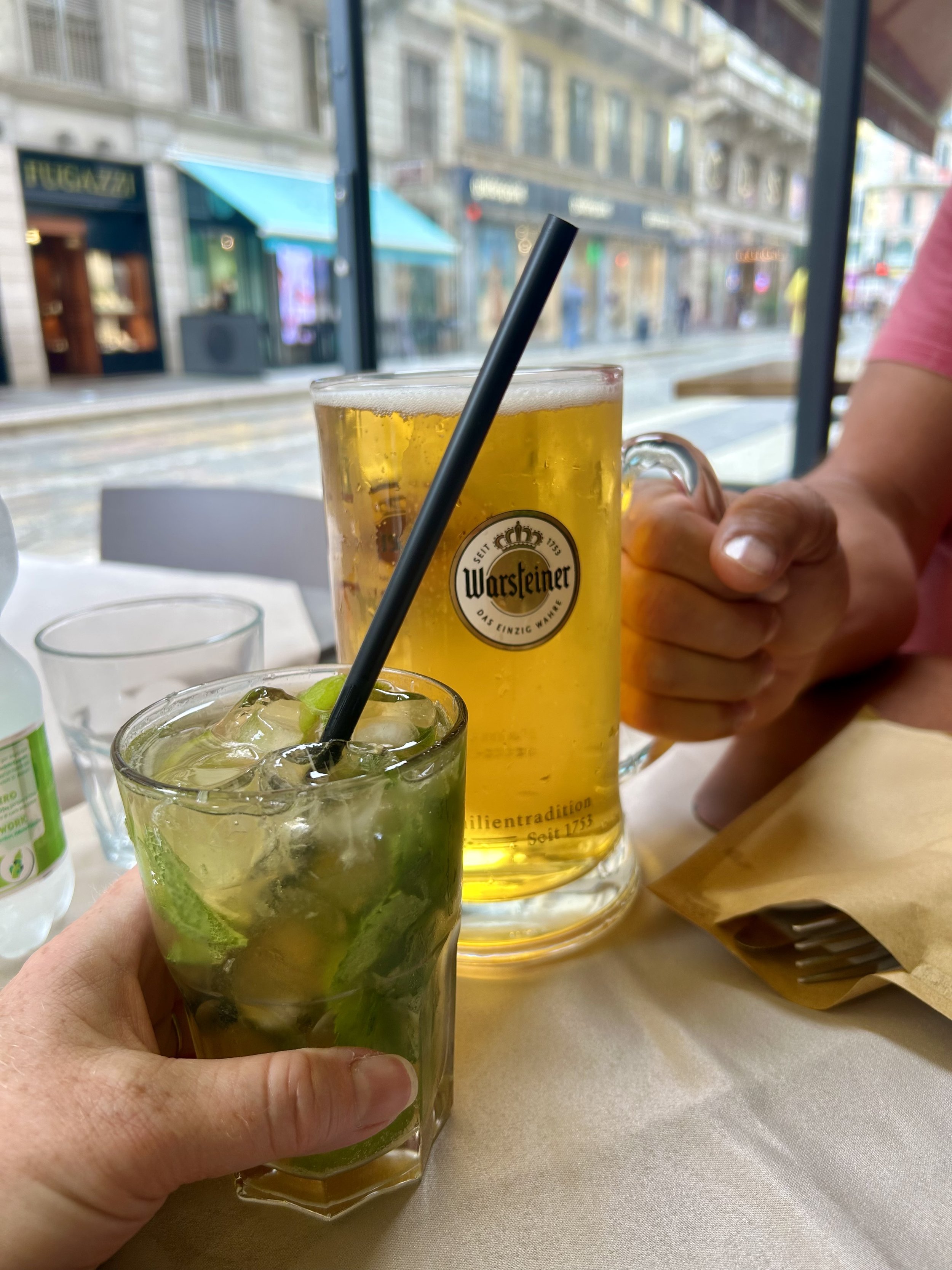 We stopped for a drink, rested our feet, and made the final push to the store, hoping it would still be open. Success. Shirts were found. Victory was declared.