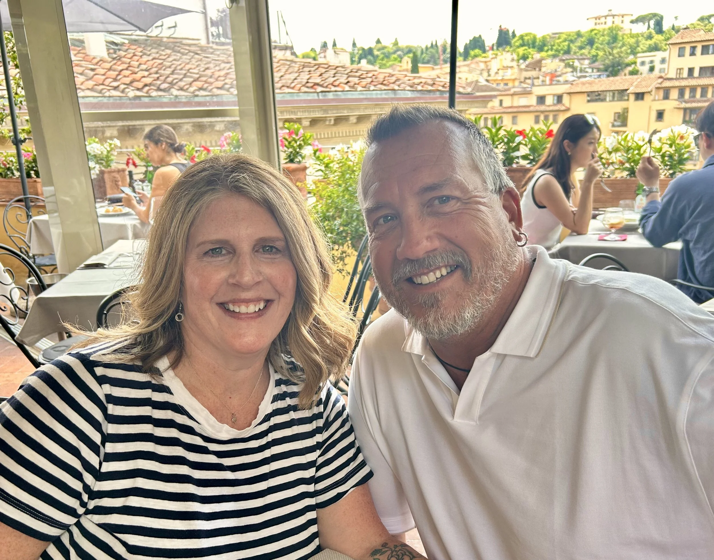 Lunch was unforgettable: we headed to the rooftop of the Grand Hotel Baglioni, where we looked out over Florence’s terracotta rooftops, domes, and winding streets while enjoying a long, relaxed meal.